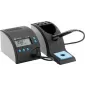 Provedení: Elektronicky plynule nastavitelná pájecí stanice s trvanlivým pájecím hrotem ERSADUR 2,2 mm ve tvaru dláta. Uvnitř ohřívaný hrot se ve spojení s ohřevným článkem PTC stará o výborný stupeň účinnosti při minimální spotřebě energie. Dále má páječka lité připojovací vedení z PVC. O bezpečnost konstrukčního dílu se stará vysoko ohmové pouzdro vyrovnání napětí spojené s pájecím hrotem na čelní straně přístroje. Kromě volné volby teploty v povoleném rozsahu teplot lze naprogramovat 3 fixní teploty nebo 2 fixní teploty a jednu teplotu v pohotovostním stavu. Kromě toho disponuje přístroj sloupcovým indikátorem výkonu, funkcí kalibrace a vypnutí. Dále disponuje přístroj novým druhem ochrany proti přetočení pájecího hrotu a multifukčním odkládacím stojanem s čisticí houbou, jakož i otočnou nádobou s houbou pro praváky a leváky.