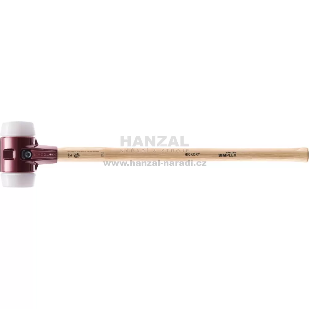 Provedení: Dvoudílné těleso z ocelolitiny, s úderovými hlavami a dřevěnou rukojetí. Všechny jednotlivé díly lze vyměnit. Upevnění se provádí pomocí šroubu. Obě strany s bílými, středně tvrdými úderovými hlavami ze super plastu.