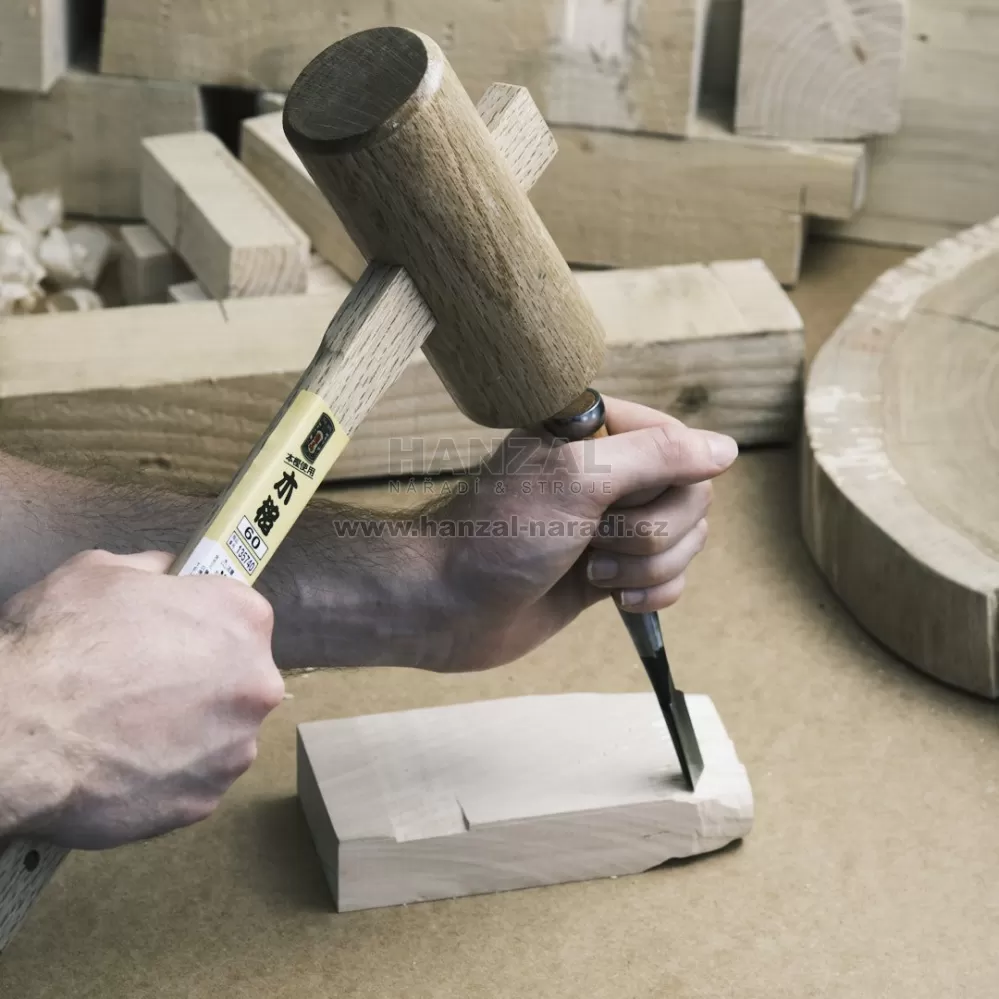 Dřevěná palička od japonské značky RYUMA z dubového dřeva. Vhodné pro truhláře, řezbáře, rámaře a řemeslníky pracující nejen se dřevem. Japonská ruční výroba. Nepoužívejte na beton, kámen či zatloukání kovových hřebíků.