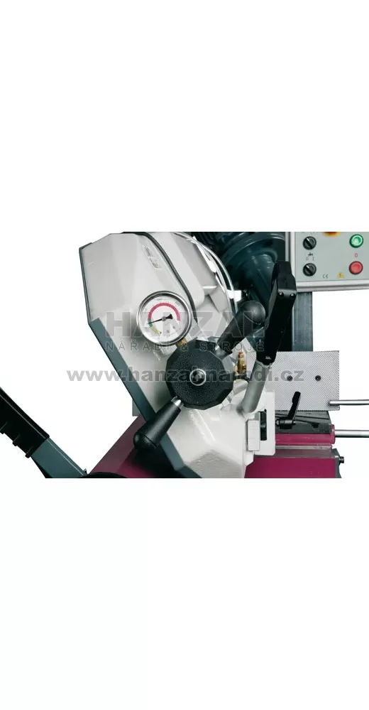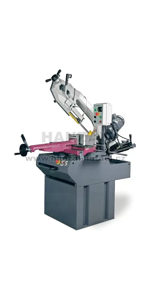 Pásová pila na řezání kovu s úhlováním pomocí otočného ramene pro hospodárnou a precizní práci.
