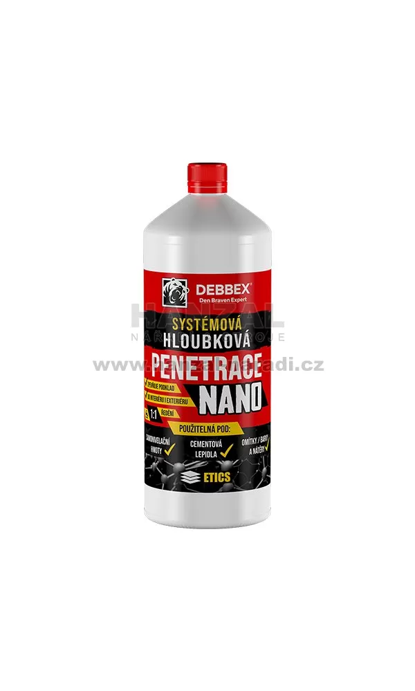 Vysoce kvalitní systémová hloubková penetrace s nano částicemi pro sjednocení savosti podkladu a snížení nasákavosti před lepením obkladů a dlažeb, před vyrovnáváním podlah samonivelačními hmotami, k lokálním opravám podkladních betonů, betonových podlah, cihelného zdiva a omítek nebo před nátěry zdiva či fasád. Má vyšší penetrační účinnost než běžné styrenakrylátové penetrace, proniká do větší hloubky, zpevňuje podklad, zvyšuje odpudivost vůči vodě a zlepšuje adhezi k následné vrchní vrstvě. Vytváří bariérový efekt – potlačuje vzlínání rozpustných solí z podkladu. Vydatnost 8 – 24 m 2 /l (při ředění 1:1). Stanovení nano velikosti volných částic v disperzi penetračního nátěru bylo provedeno v Ústavu pro nanomateriály, pokročilé technologie a inovace na Technické univerzitě v Liberci. Charakteristika Po vytvrzení nerozpustná ve vodě Po vytvrzení odolná alkalické hydrolýze Zpevňuje podklad, zvyšuje jeho mechanickou odolnost Zvyšuje přilnavost podkladu před lepením obkladů a dlažeb Potlačuje vzlínání rozpustných solí z podkladu – tzv. vytváření bariérového efektu Použití na nekonstrukční a konstrukční beton, anhydrit, zdivo, omítky, sádrokartonové a cementovláknité desky a jiné minerální podklady penetrace betonových podlah před aplikací samonivelačních a vyrovnávacích stěrek ke zpevnění a sjednocení savosti podkladu sjednocení nasákavosti podkladu před lepením obkladů a dlažeb jako adhezní můstek pro další materiály: vodou ředitelné nátěrové hmoty, lepidla, akrylátové fasádní nátěrové hmoty, syntetické omítkoviny, tmely, vyrovnávací a sanační hmoty na bázi polymerních disperzí Identifikace nebezpečnosti EUH208 Obsahuje Směs 5-chlor-2-methyl-1,2-thiazol-3 (2H) -onu a 2-methyl-1,2-thiazol-3 (2H) -onu. Může vyvolat alergickou reakci. EUH210 Na vyžádání je k dispozici bezpečnostní list.