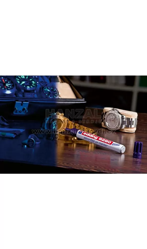UV značkovač edding 8280 Provedení: Kulatý hrot s hliníkovým dříkem. Rychle schnoucí, permanentní speciální inkoust, který je viditelný pouze při… Celý popis