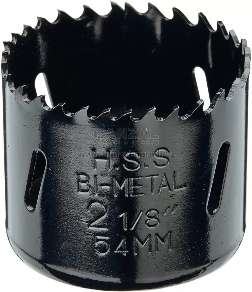 Provedení: Bimetalová konstrukce zaručuje maximální bezpečnost a odolnost proti opotřebení a přesnost. Nezlomí se ani při zvýšeném zatížení. Kombinované ozubení 4/6 zubů na palec pro chod s nízkými vibracemi v materiálu od 2 mm. Solidní základní deska umožňuje větší počet závitů a eliminuje vliv obvodového a bočního házení. Postranní výřezy usnadňují odstranění vyřezaného materiálu. Hloubka řezu 38 mm. Dodává se bez upínací stopky a bez vrtáku.