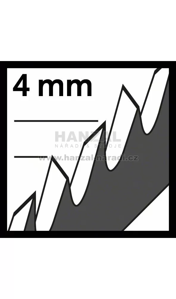 Specifický důvod RTB3 Zuby s velkou roztečí (4 mm) a mimořádnou délkou 250 mm řeže dřevěné materiály s tloušťkou až do 160 mm