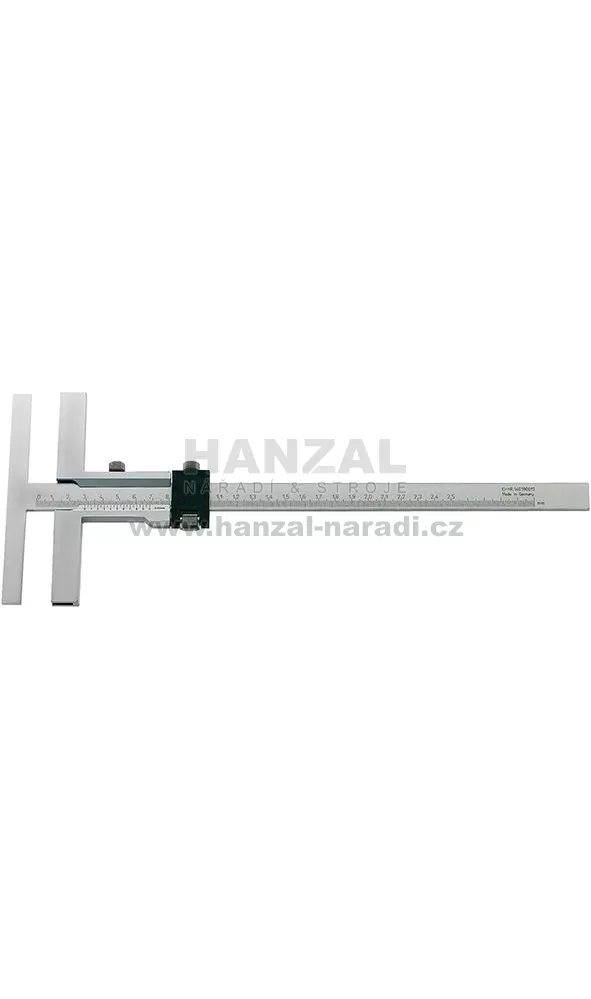 Provedení: Z nerezové oceli, tvrzené. Odečítací stupnice a nonius matně chromované, s tvrzenými hranami a dlouhou posuvkou ve tvaru T, s aretačním šroubkem a jemným nastavením. Dodává se v kartonu.
