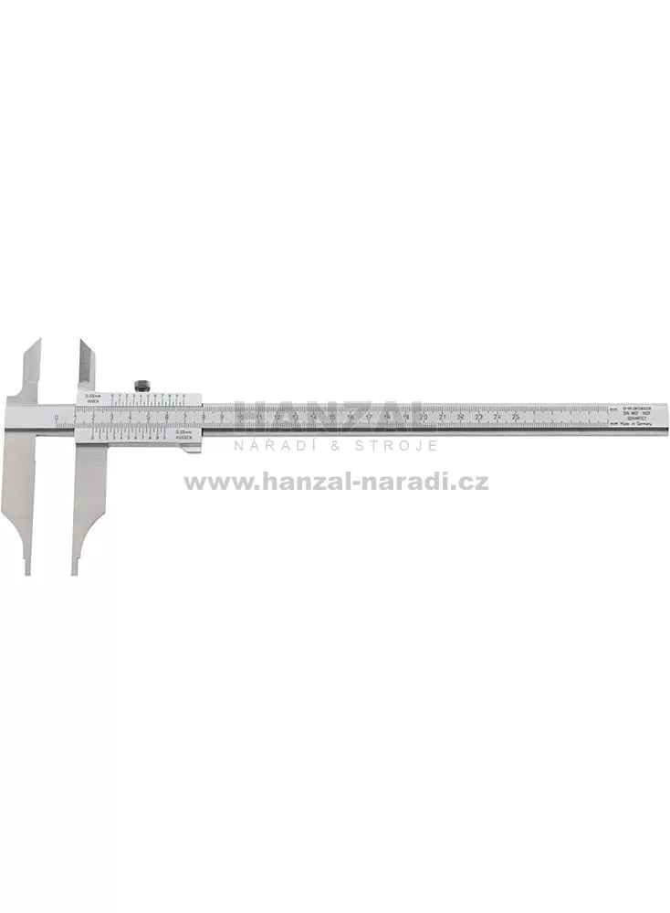 Provedení: Z tvrzené nerezové oceli, odečítací stupnice a nonius chromované do matna, laserem velmi přesně gravírované měřicí hroty a aretační šroubek.