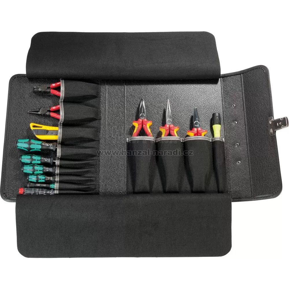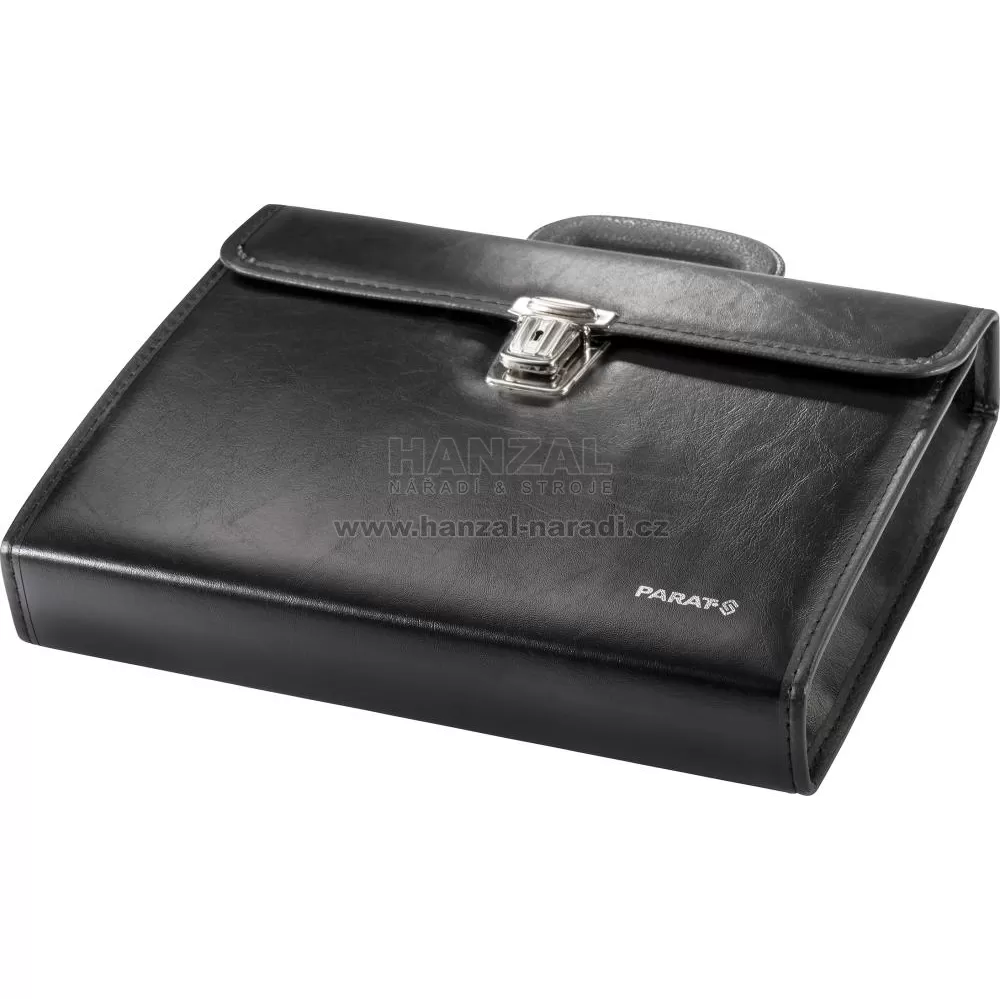 Provedení: Pouzdro na nářadí z vysoce kvalitní umělé kůže, černé, výklopné. Vybavené s 13 zástrčnými přihrádkami a 2 překlápěcími klapkami. Dodává se bez obsahu.