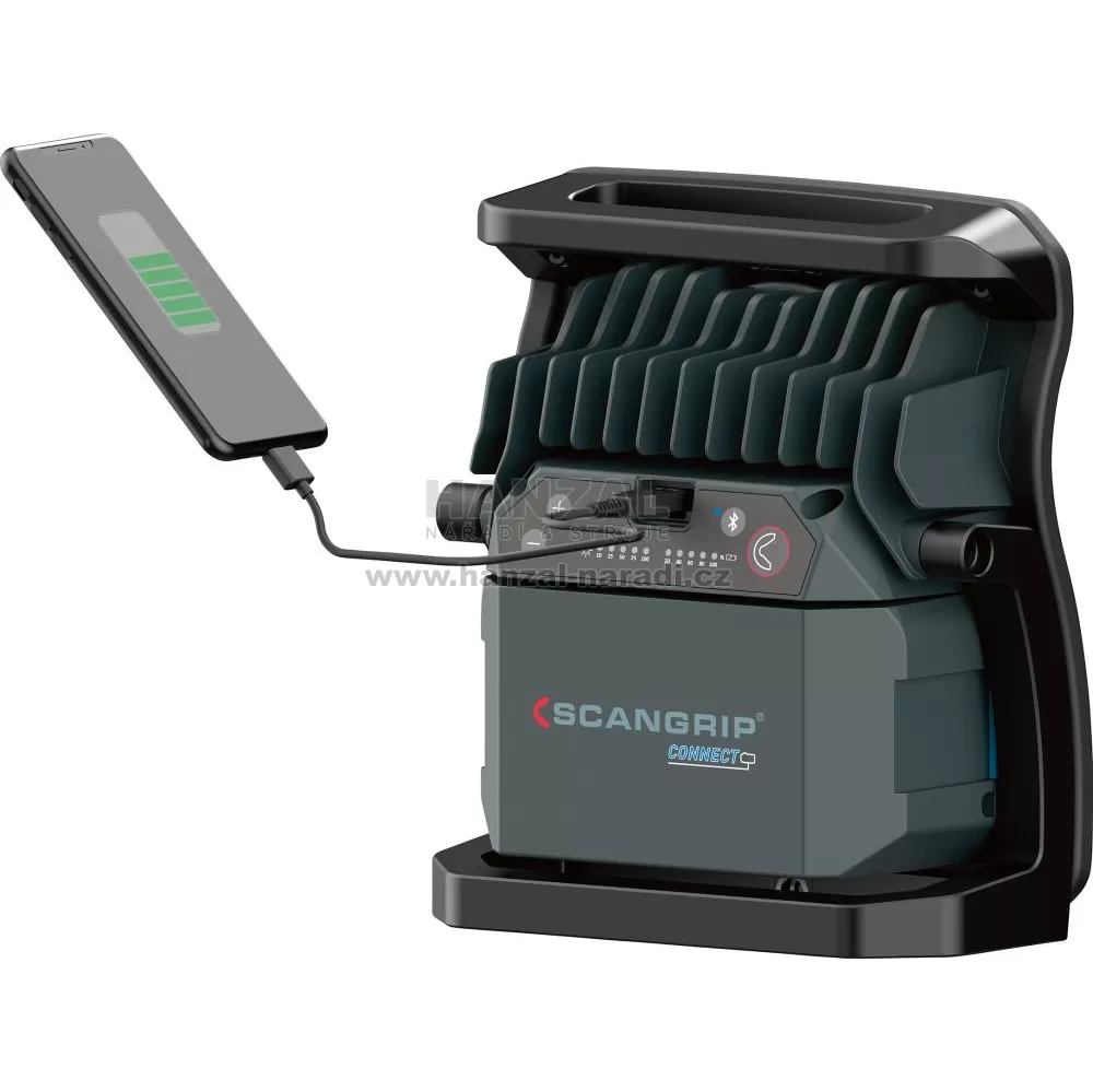 Upozornění: S integrovanou funkcí jako záložní nabíjecí zdroj, k nabíjení např. chytrých telefonů, tabletů a jiných zařízení s akumulátorem. Pro použití s akumulátory značek Bosch, Dewalt, Fein, Festool, Flex, Makita a Milwaukee je potřeba samostatně dostupný adaptér rozhraní řady Connector. Skutečná doba svícení závisí na použitém akumulátoru.