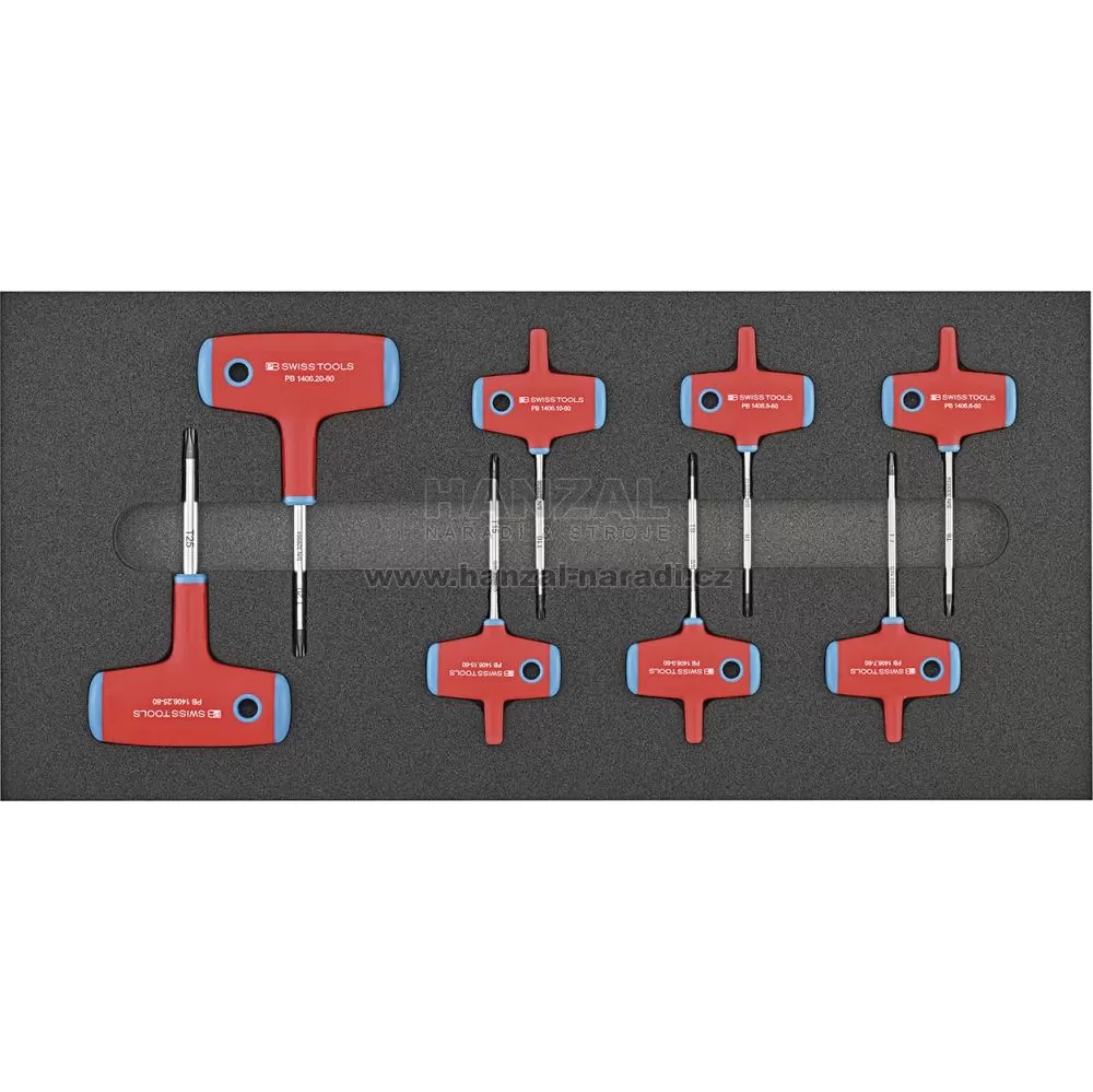 8 šroubováků s příčnou rukojetí vnitřní TORX® T 6; 7; 8; 9; 10; 15; 20; 25
