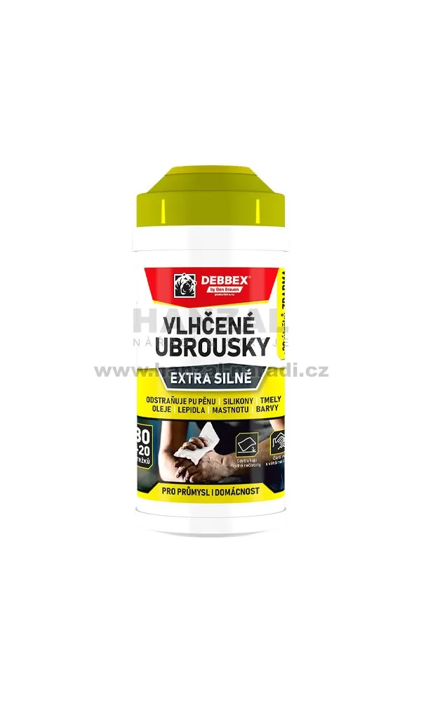 Extra silné čisticí a vlhčené ubrousky pro efektivní odstranění nevytvrzené PUR pěny, silikonů, tmelů, většiny lepidel, olejů, mazadel, laků a barev z rukou, pracovních nástrojů nebo potřísněných povrchů. Odstraňuje také zaschlé nátěry z nesavých povrchů, max. do 24 hodin po aplikaci. Charakteristika okamžitě a snadno použitelné vysoká čistící účinnost s osvěžujícím efektem Použití čištění podkladů od nevytvrzených tmelů – silikonu, polyuretanu, butylu, pryžových, kaučukových, disperzních, cementových a epoxidových lepidel odstraňuje nevytvrzenou PU pěnu čištění mastnot, olejů, mazadel, nátěrů na bázi olejů, nebo vody (před zaschnutím) čištění inkoustů, zašlé špíny a prachu osvěžuje a čistí staré laky, nátěry a tmely určené pro domácí, dílny, kanceláře, průmyslové strojírenské provozy, autoopravny Identifikace nebezpečnosti P101 Je-li nutná lékařská pomoc, mějte po ruce obal nebo štítek výrobku.P102 Uchovávejte mimo dosah dětí.P103 Pečlivě si přečtěte všechny pokyny a řiďte se jimi.P305+351+338 PŘI ZASAŽENÍ OČÍ: Několik minut opatrně vyplachujte vodou. Vyjměte kontaktní čočky, jsou-li nasazeny a pokud je lze vyjmout snadno. Pokračujte ve vyplachování.P337+313 Přetrvává-li podráždění očí: Vyhledejte lékařskou pomoc/ošetření.P501 Odstraňte obsah/obal ve sběrném místě.Tento produkt neobsahuje žádné látky, které jsou vyhodnoceny jako PBT nebo vPvB v koncentraci 0,1 % hmotnostních nebo vyšší.Tento produkt neobsahuje SVHC látku v koncentraci 0,1 % hmotnostních nebo vyšší.Tento produkt neobsahuje endokrinní disruptory v koncentraci 0,1 % hmotnostních nebo vyšší.