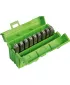 Provedení podle DIN 7353. Se silným dříkem, poniklovaný, raznicová hlava indukčně tvrzená, s pevností do 1200 N/mm². V plastovém boxu s odklápěcím víkem, uspořádáno s přesazením pro snadné vyjmutí.