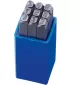 Provedení: 9díl. (0–9). Z kvalitní nástrojové oceli, druh písma podle DIN 1451.