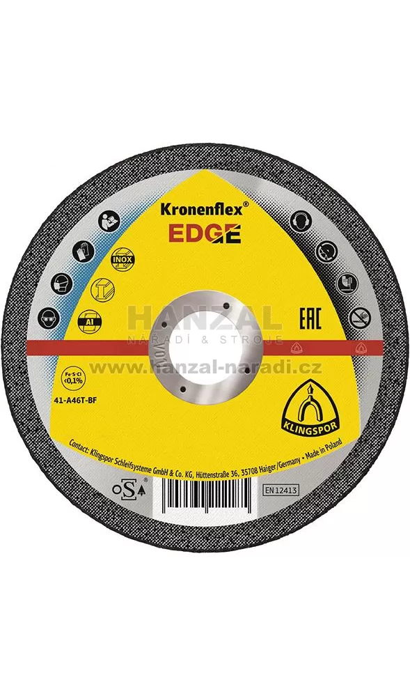 Řezný kotouč pro obrábění nerezu a hliníku EDGE SPECIAL EDGE SPECIAL Provedení:Samoostřící korund (A 46), tvrdý, pojivo z umělé pryskyřice a s… Celý popis