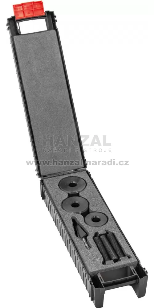 Rozsah dodávky: 3 šroubovací děrovače plechu Ø 28,3; 32; 35 mm, 1 bit kuželového vrtáku TiAlN 1/4" Ø 4–20 mm na plechy do tloušťky 2 mm.
