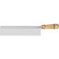 Provedení: Z legované nástrojové oceli, se zesíleným hřbetem a jemnými, rozváděnými a tvrzenými zuby. S lakovanou rukojetí z bukového dřeva.