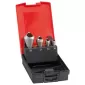Sada záhlubníků s příčným otvorem 90° Provedení: Dodáváme v robustní, vysoce kvalitní plastové kazetě s automatickou funkcí postavení záhlubníků při… Celý popis