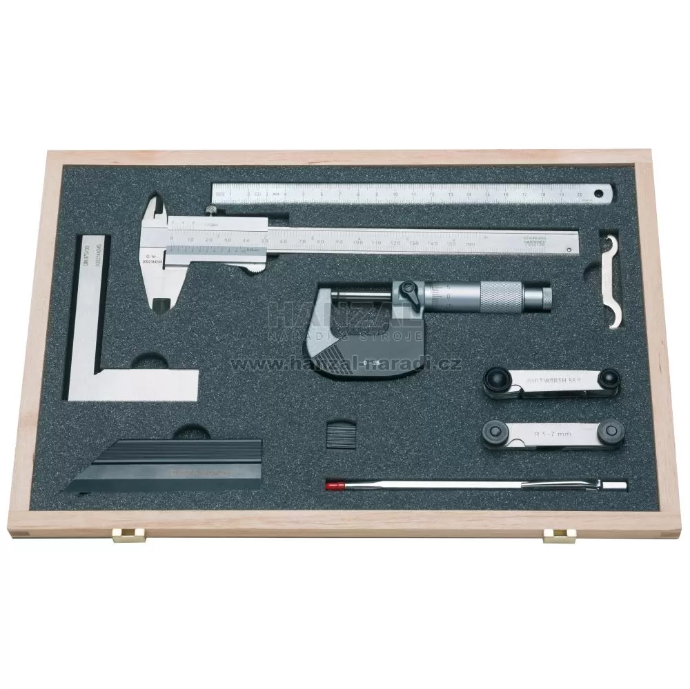Sada měřicích nástrojů, 8-dílná Provedení: Dodáváme v dřevěném boxu. Obsah dodávky: 1 posuvné měřítko analogové, 150 mm 1 mikrometr, 0-25… Celý popis