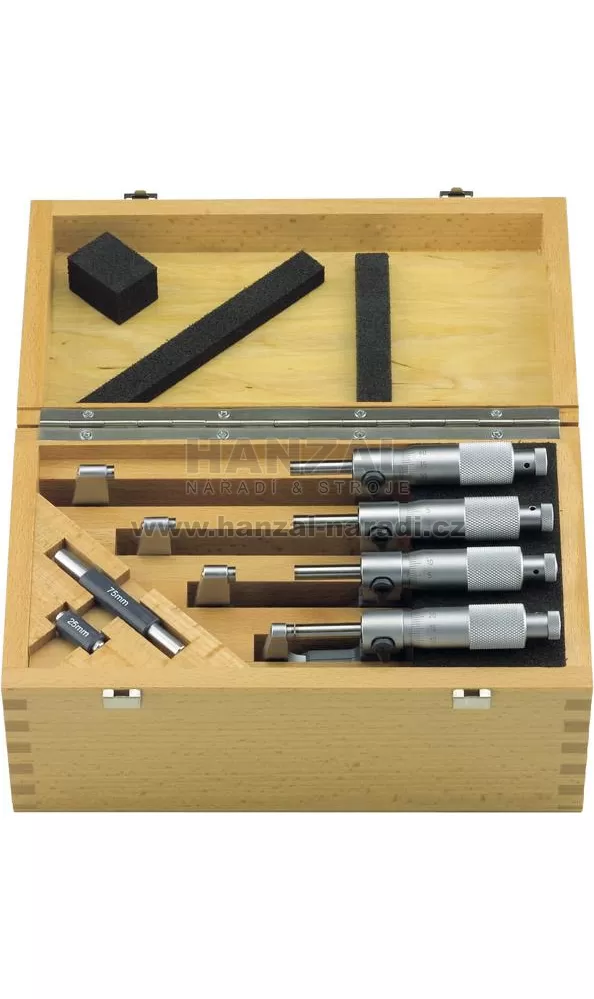 Sada mikrometrů Provedení: Stupnice matně chromovaná, z tvrzené oceli, měřicí vřeteno a kovadlinka z tvrzené oceli, regulace měřicí síly jemnou… Celý popis