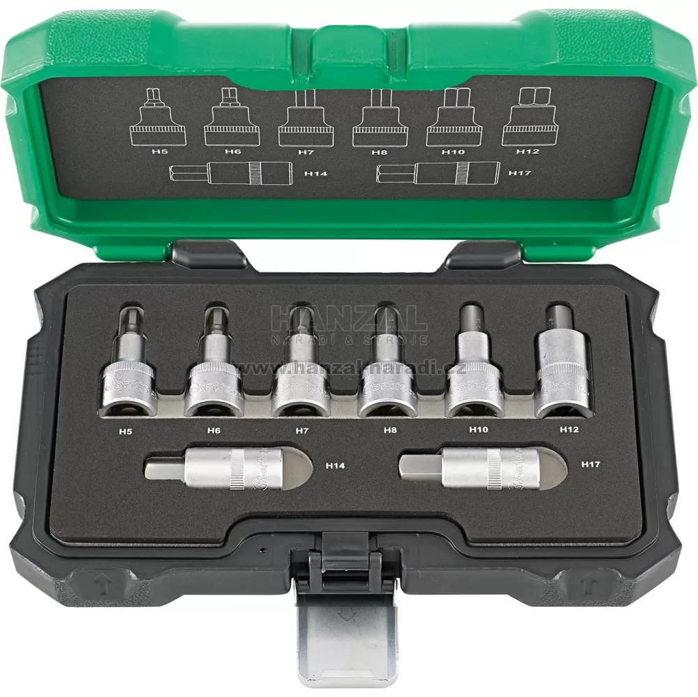 8 sad adaptér bitů 1/2“pro šrouby s vnitřním šestihranem, délky 5; 6; 7; 8; 10; 12; 14; 17 mm