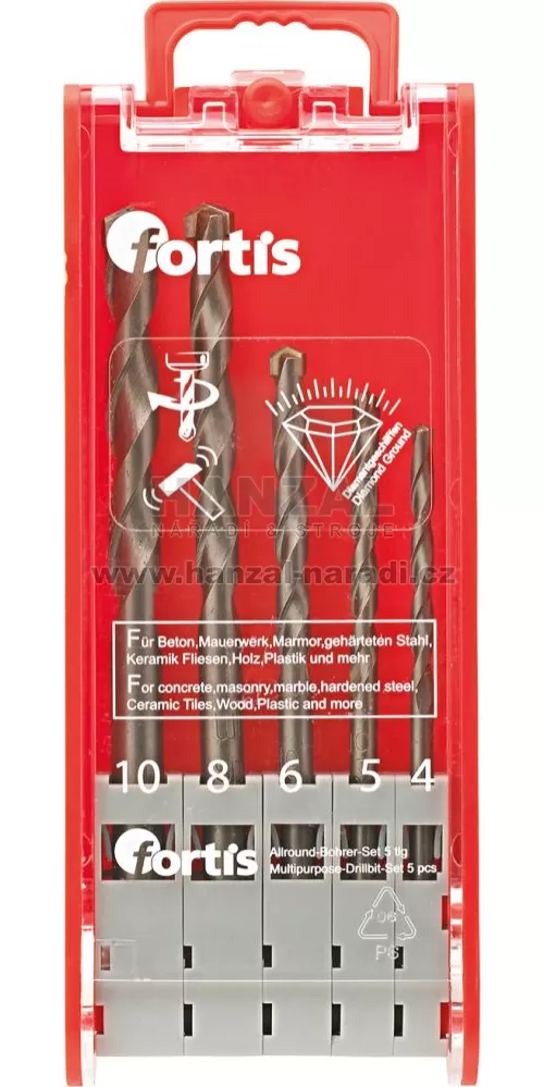 Univerzální vrták-Set 5díl. 4,5,6,8,10x120mm FORTIS