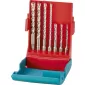 Provedení: Lopatkové ostří se třemi křídly se zapuštěnou hlavou z tvrdokovu odolnou proti opotřebení, pro dlouhou životnost a velmi dobré odstraňování materiálu. Vlnovitá konstrukce hlavy zajišťuje vyšší přenos výkonu a lepší odstraňování materiálu. Rychlejší odstraňování vyvrtaného materiálu bez vznícení prostřednictvím široké šroubovice s optimalizovanými vibracemi. Dodáváme v plastovém pouzdru.