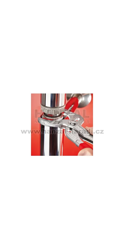 86 01 300 Klešťový klíč nahrazuje sadu klíčů na šrouby, metrické i palcové. hladké čelisti pro šetrnou montáž povrchově zušlechtěných armatur - práce přímo na chromu!. Nastavitelný nástroj pro utahování šroubů. Výborně se hodí k uchopování,...