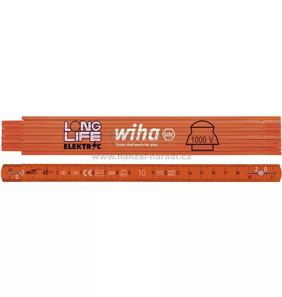 Skládací metr pro elektrikáře Longlife® Provedení: Z plastu, barva oranžová, černá hluboce vyražená stupnice v mm na horní a dolní hraně článků s… Celý popis