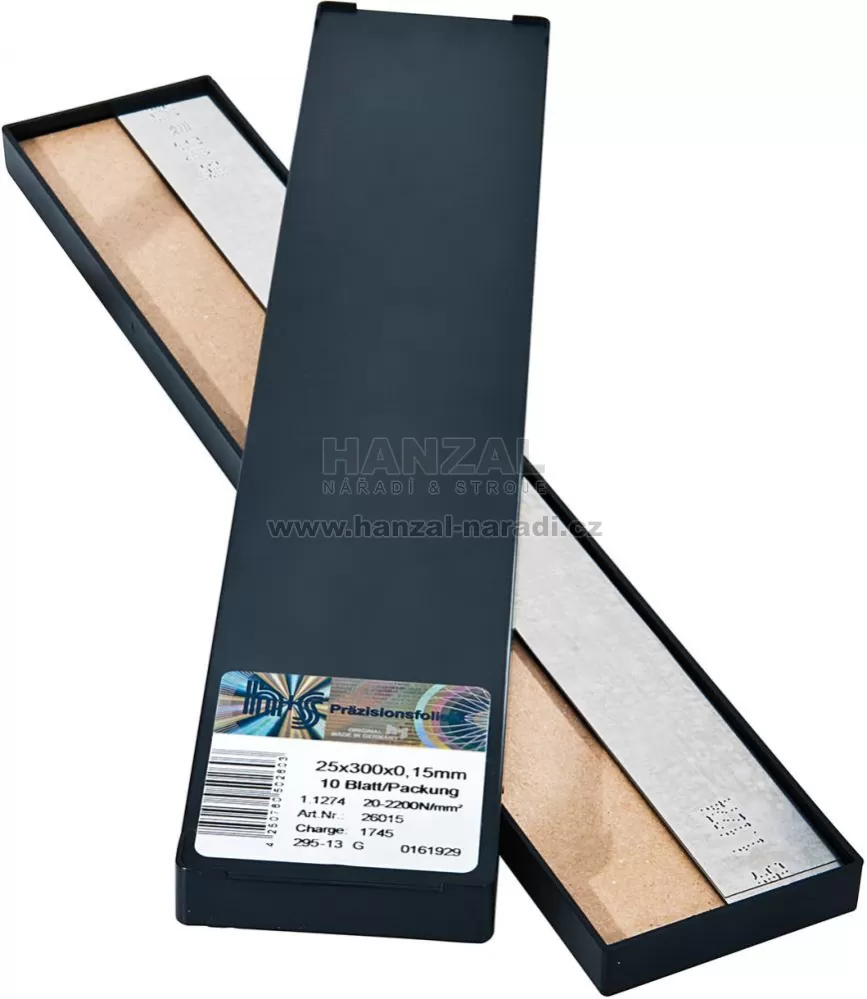 Provedení: Kovové fólie s tolerancí tloušťky T3 z pružinové tvrzené pásové oceli 1,1274.