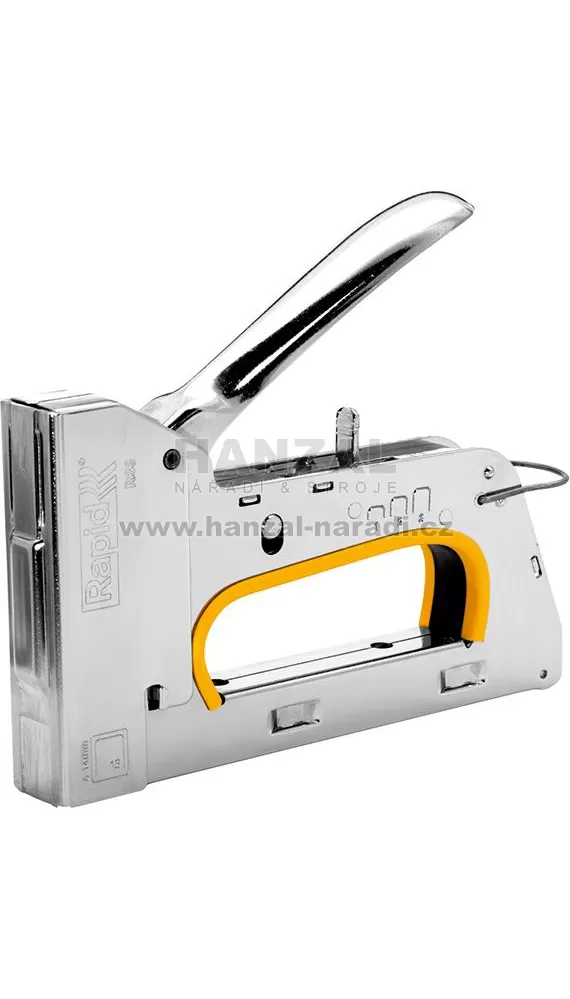 Provedení: Z oceli, snadno ovladatelný, bez zpětných nárazů, se zásobníkem se spodním plněním pro jednoduchou práci. Pojistka rukojeti zabraňuje neúmyslnému spuštění. Kapacita zásobníku: 156 svorek.