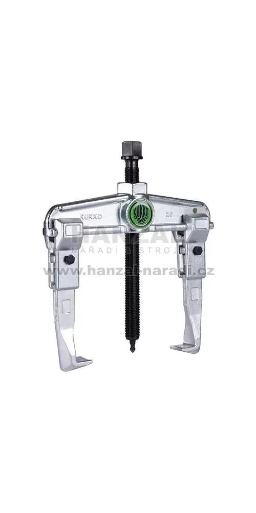 Provedení: S posuvnými a vždy paralelními a přesaditelnými stahovacími háky z chromem legované nástrojové oceli a speciálně povrstveným tlačným vřetenem s mimořádně dobrými kluznými vlastnostmi. Volně otočný středicí hrot, vyměnitelný a přesaditelný (kulička/hrot).