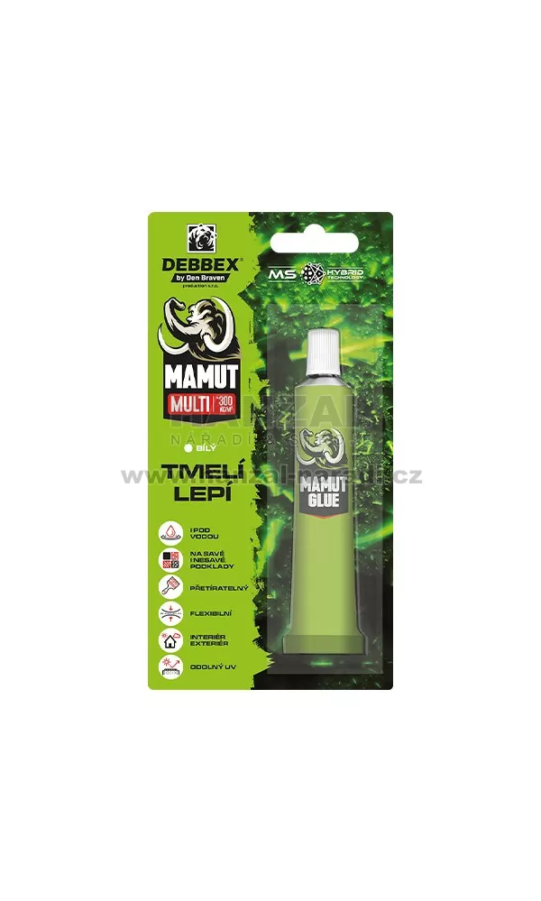Na MAMUT GLUE Multi je nejlepší jeho všestrannost. Lepí a tmelí totiž zároveň. A také díky tomu šetří Váš čas i náklady. Kam se hodí? do interiéru i exteriéru na většinu stavebních materiálů (dřevo, OSB desky, sádrokarton, kámen, beton, zdivo, sklo, kov a další) na lepení podlahových lišt, nábytku, schodnic, parapetů a dalších k tmelení dilatačních spár pro opravy trhlin a prasklin v omítce, zdivu či betonu do práce i domácnosti Jak lepit? jednoduše pomocí aplikační pistole naneseme lepidlo ve svislých pruzích silně přitlačíme na lepenou plochu použijte svorky či podpěru, než lepidlo vytvrdne Jak tmelit? tmel vytlačujeme pomocí aplikační pistole v tenkých pruzích vyhlazujeme do 10 minut po aplikaci V čem vyniká? lepení a tmelení v jednom kroku odolnost vůči UV záření tenkovrstvé lepení je pružný lepí na savé i nesavé podklady snadno se přetírá barvami už po 1 hodině neobsahuje rozpouštědla po vytvrzení odolný od -40 °C až do +90 °C Na co pozor? čistý podklad bez mastnot, prachu a volných částic nelepí PE, PP, PC, PMMA, asfalt a živičné materiály lepené předměty je potřeba do vytvrzení lepidla řádně fixovat Charakteristika pro lepení a tmelení široké škály materiálů lepení i pod vodou (pouze nesavé materiály) tenkovrstvé lepení UV odolný, mrazuvzdorný vysoká přilnavost i k vlhkému podkladu neobsahuje rozpouštědla, bez zápachu po vytvrzení přetíratelné barvami (mimo alkydových pryskyřic) lepení zrcadel, podlahových lišt, schodnic, parapetů apod. lepení nerezové oceli, hliníku mědí, olova, skla, PVC, betonu, keramiky, dřeva, zdiva, sádrokartonu apod. tmelení v oblasti průmyslu (auto výroba, železnice, letecký výroba) konstrukční tmelení, dekorace apod. do interiéru i exteriéru na savé i nesavé podklady Identifikace nebezpečnosti EUH208 - Obsahuje Trimethoxyvinylsilan & N-(3-(trimethoxysilyl)propyl)ethylenediamine & 1,2-Ethanediamine, N- - & Dioctyltinbis(acetylacetonate). Může vyvolat alergickou reakci. EUH210 - Na vyžádání je k dispozici bezpečnostní list.