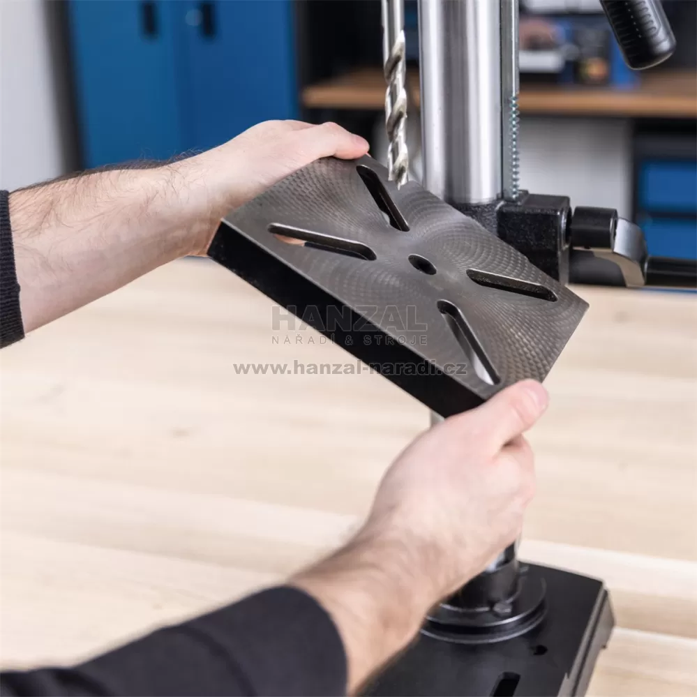 Pokud hledáte spolehlivého pomocníka pro opravdu přesné vrtání, je stolní vrtačka Scheppach TBM 250 Vario tou pravou volbou. Silný 600W indukční motor poskytuje dostatek výkonu pro vrtání do dřeva, hliníku, plastů i oceli, takže vrtačka zvládne širokou škálu projektů v dílně i na stavbě. Díky plynule nastavitelné hloubce vrtání až 60 mm a širokému rozsahu otáček 450–2 580 ot./min lze stroj snadno přizpůsobit různým materiálům i typům vrtáků. Integrovaný křížový laser výrazně zvyšuje přesnost vrtání a pomáhá rychle nastavit ideální bod vedení vrtu. Masivní litinová konstrukce se sloupem o průměru 59,5 mm zajišťuje maximální stabilitu při práci. Pracovní stůl o rozměrech 198 × 194 mm je otočný o 360°, výškově nastavitelný a lze jej naklopit až o ±45°, což umožňuje pohodlné vrtání i složitějších obrobků. Digitální displej navíc zobrazuje aktuální otáčky v reálném čase. Rychloupínací sklíčidlo s ložisky pojme vrtáky od 1,5 do 13 mm a nastavitelný doraz hloubky zajistí konzistentní výsledky i při sériovém vrtání. Výkyv 125 mm dovoluje vrtat obrobky o průměru až 250 mm. Vrtačka má pevnou základnu pro bezpečné uchycení ke stolu a ergonomická pogumovaná rukojeť zajišťuje komfortní ovládání i při delší práci.