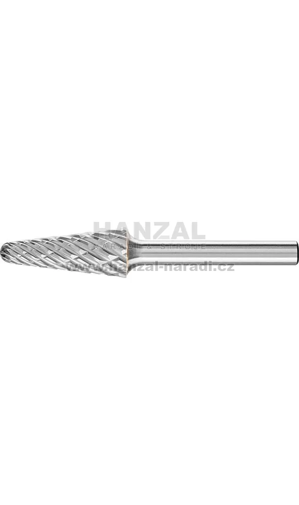 Technická fréza, tvrdokov, (rotační pilník) DIN 8033 –Ø stopky 6 mm, kuželový tvar s kulovým zakončením KEL, ozubení STEEL