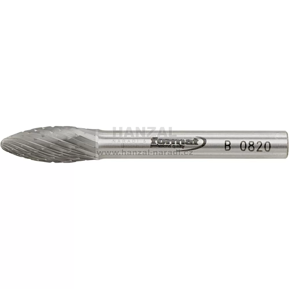 Technická fréza, tvrdokov, (rotační pilník) DIN 8033 –Ø stopky 6 mm, plaménkový tvar B, ozubení C