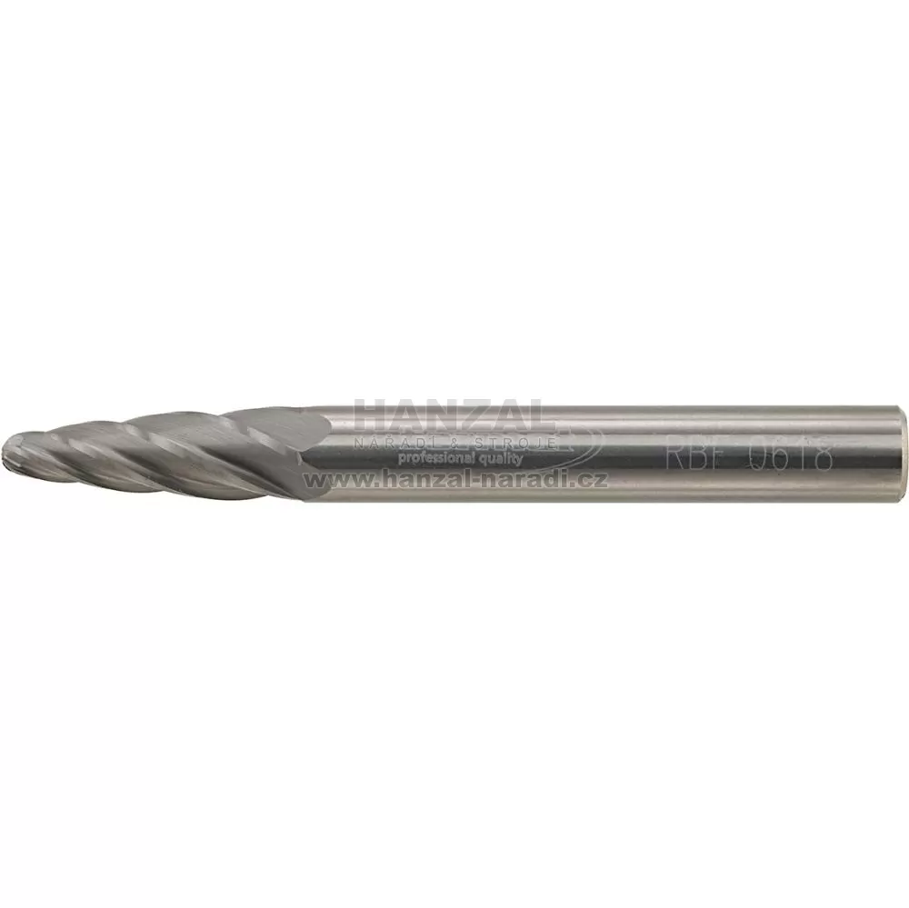 Technická fréza, tvrdokov, (rotační pilník) DIN 8033 –Ø stopky 6 mm, parabolický tvar RBF, ozubení hliník