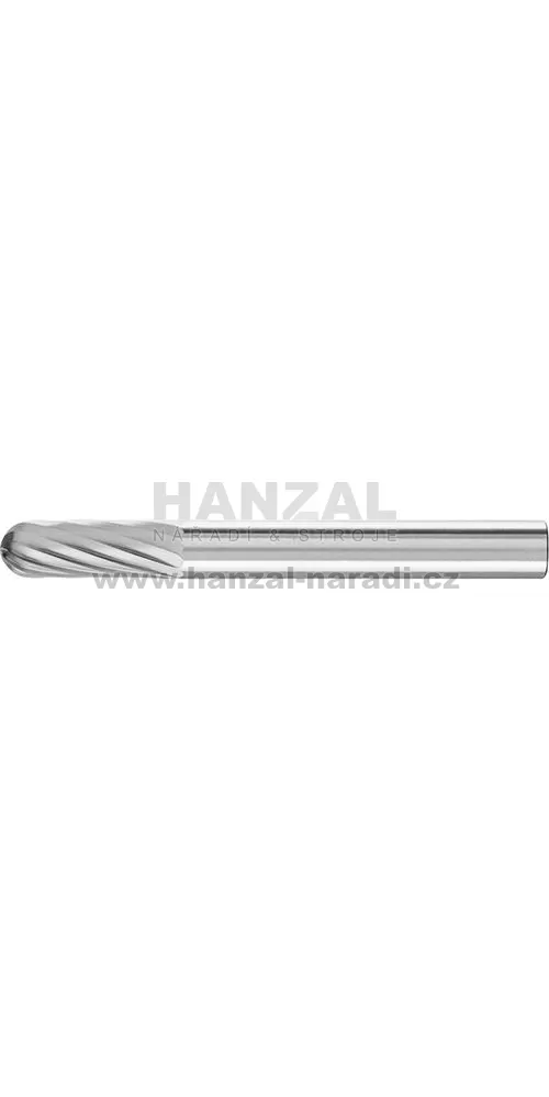 Technická fréza, tvrdokov, (rotační pilník) DIN 8033 –Ø stopky 6 mm, válcový tvar s kulovým zakončením WRC, ozubení 3