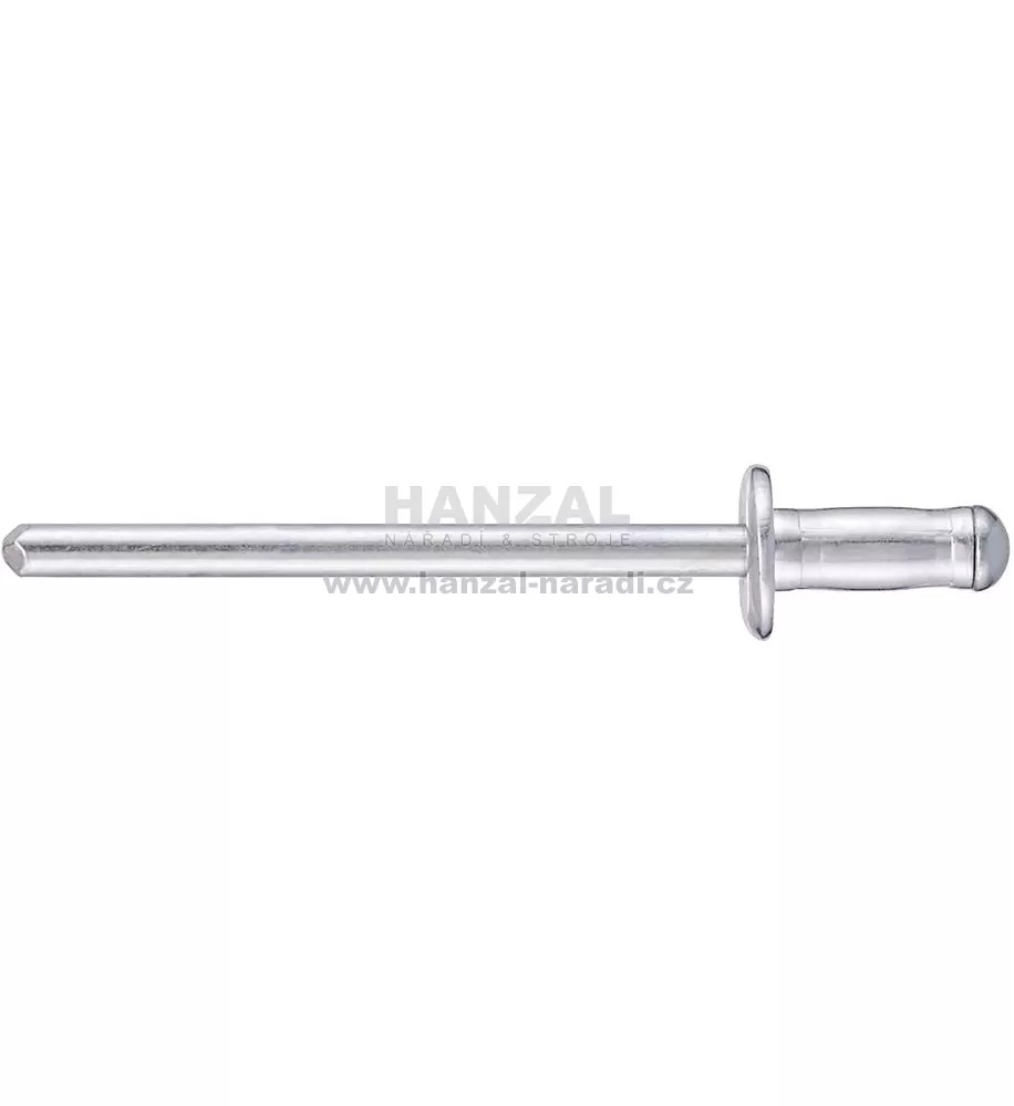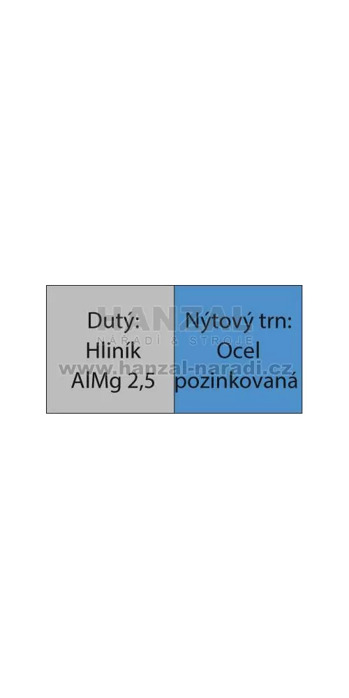 Provedení: Dutý nýt z hliníku AlMg 2,5, nýtový trn z pozinkované oceli.