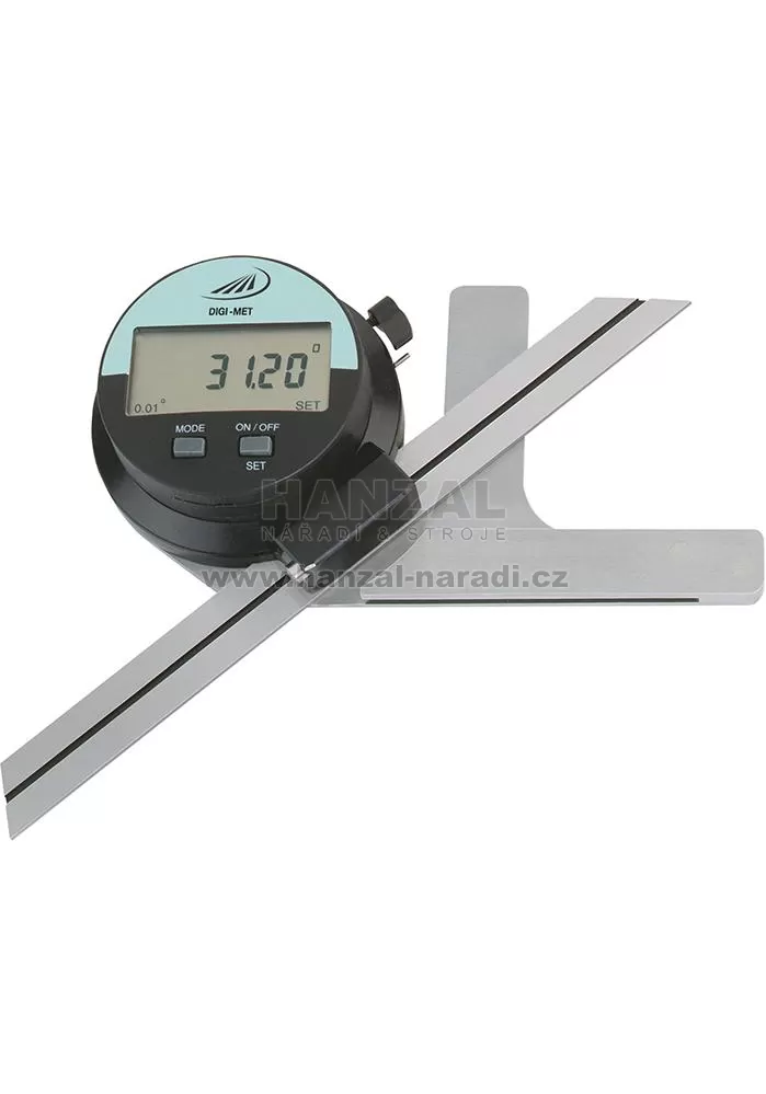 Funkce: Zapnutí a vypnutí, možnost nastavení nulového bodu na kterémkoliv místě. Přesnost: 1 úhlová minuta, příp. 0,01 úhlový stupeň, rozdíl v zobrazení: ± 0,5 úhlová minut, přepínatelné zobrazení (stupně a minuty, desetinné stupně), přepínatelné měřicí rozmezí (1 x 360°, 2 x 180°, 4 x 90°).