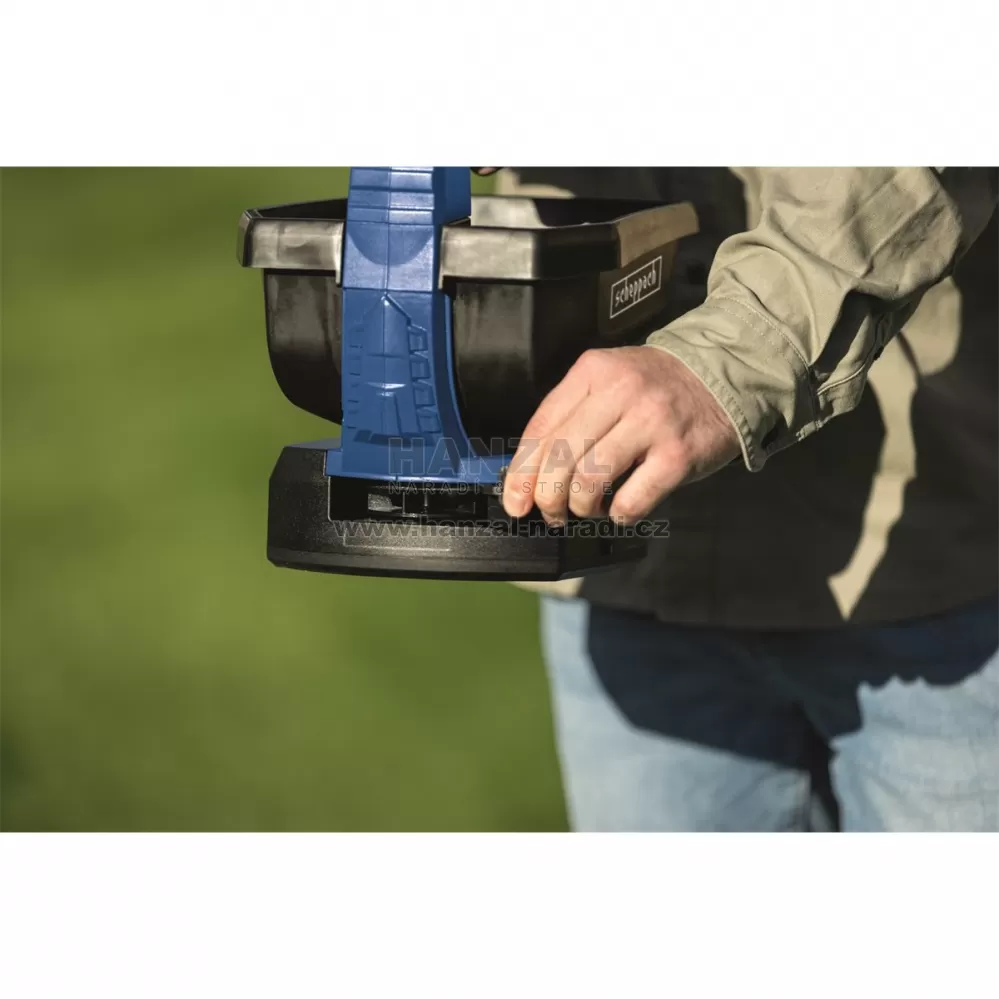 C-GSP800-X - 20 V aku rozmetadlo Kompaktní akumulátorové ruční rozmetadlo Scheppach C-GSP800-X je skvělým pomocníkem pro hnojení, setí nebo rychlé rozmetání posypové soli. Rozmetadlo se postará o rovnoměrné rozdělení materiálu na různých typech povrchů, ať už jde o trávník, sníh nebo půdu. Velký zásobník s kapacitou 3,5 litru umožňuje pokrytí plochy až 800 m2 na jedno naplnění. Díky nastavení množství rozmetaného materiálu v 8 stupních a možnosti individuálního nastavení šířky rozmetání až na 5 metrů máte kontrolu nad tím, kolik a kam materiálu aplikujete. Pro maximální přizpůsobení podmínkám je zde také páčka pro úpravu úhlu rozmetání a elektronické nastavení rychlosti v 6 stupních. Ergonomická rukojeť s měkčeným protiskluzovým povrchem zajišťuje pohodlnou manipulaci i při delším používání. Stroj se dodává bez baterie a nabíječky. Konstrukce Rozmetadlo je vybaveno moderním uhlíkovým motorem zajišťující plynulý chod. Stroj je plně kompatibilní se všemi akumulátory a nabíječkami řady Scheppach IXES 20V, které nabízí maximální flexibilitu a pohodlí bez kabelů. Součásti balení: rozmetadlo C-GSP800-X Servisní zázemí Scheppach svým zákazníkům zároveň poskytuje širokou servisní síť, jejíž nedílnou součástí je i naše společnost. Využijte prodloužené záruky Bližší informace o záručních podmínkách naleznete zde. Baterie a nabíječky pro 20 V aku systém IXES Jednotlivé stroje 20V aku systému Sheppach 20V IXES se dodávají bez baterie a nabíječky. Tyto komponenty se kupují samostatně a to z toho důvodu, abyste ušetřili při nákupu dalšího aku nářadí stejné řady. Na začátku si proto můžete pořídit pouze jednu baterii a nabíječku, se kterými pak budete schopni pohánět libovolný stroj z více než 30 různých modelů nářadí a zahradní techniky systému IXES. Celou nabídku naleznete v záložce Baterie a nabíječky. POZOR! Stroje, akumulátory a nabíječky systému IXES nejsou kompatibilní se staršími 20V systémy Scheppach! Případné bezpečnostní pokyny, výstrahy a upozornění jsou součástí návodu k obsluze, který je k dispozici v sekci KE STAŽENÍ. Kontaktní údaje výrobce / dovozce / zplnomocněného zástupce výrobce v EU: Scheppach GmbH Günzburger Str. 69, 89335 Ichenhausen, Germany email: service@scheppach.com