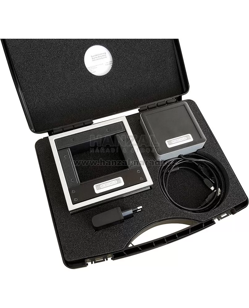 Provedení: Velký osvětlený barevný displej. Rychlý odečet a snadná obsluha. 4 přesně broušené měřicí plochy. Bezdrátová komunikace. Dálkové zobrazování na chytrých telefonech. Provozní doba akumulátoru 10 hodin. Dodává se v čalouněném plastovém kufříku.