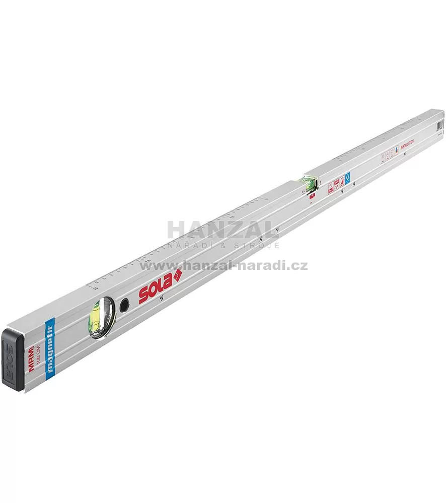 Provedení: Z hliníku, eloxováno. Se silným neodymovým magnetem. Metoda boční instalace magnetů do profilu vytváří průběžně rovnou měřicí plochu pro přesné a čisté výsledky měření. Čtyřkroužková horizontální libela pro umístění na 2 % sklon. Středově umístěná mm stupnice na horní straně vodováhy k přenosu rozměrů. Přesnost měření v běžné poloze 0,5 mm/m. Přesnost měření v invertované poloze 0,75 mm/m