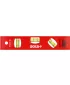 Provedení: Z tlustostěnného hliníku s červenou práškovou povrchovou úpravou a silnou přilnavostí díky velkoobjemovým permanentním magnetům ve spodní části. Nerozbitné trubičkové libely z plexiskla jsou elektronicky kalibrované a ultrazvukem svařené s držákem. 5 let záruka na odolnost libel. S nerozbitnými koncovkami pro tlumení nárazu. Přesnost měření v běžné poloze 0,5 mm/m. S frézovaným měřicím povrchem a 2 silnými magnety.
