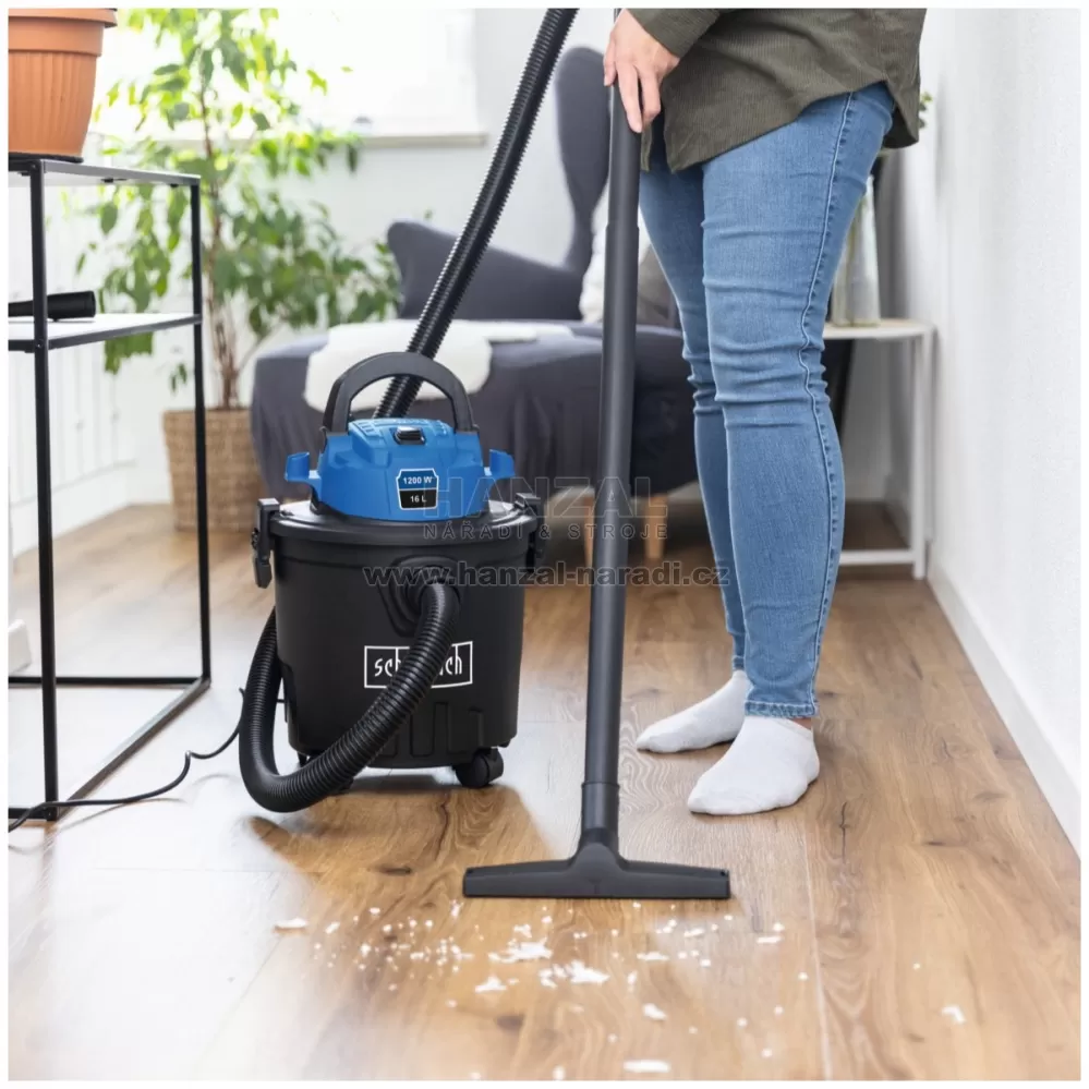 Scheppach VC 16 je kompaktní a výkonný pomocník, který zvládne jak suché nečistoty, tak i rozlitou vodu. Tento univerzální vysavač s výkonem 1 200 W a sacím tlakem 20 kPa si hravě poradí s úklidem dílny, garáže i domácnosti. Díky funkci foukání jej navíc využijete i pro odstranění nečistot z pracovního stolu, vyfoukávání prachu z těžko přístupných míst nebo pro rychlé sušení menších ploch.