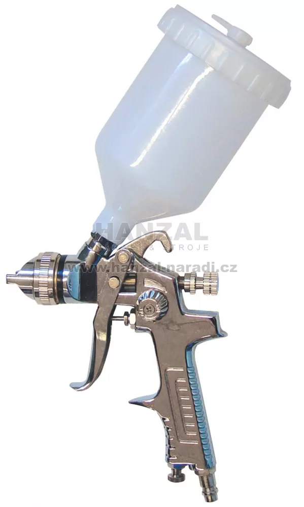 • Konstrukce: korpus pistole z leštěného hliníku, nylonová vrchní nádobka s filtrem, ergonomicky tvarovaná rukojeť