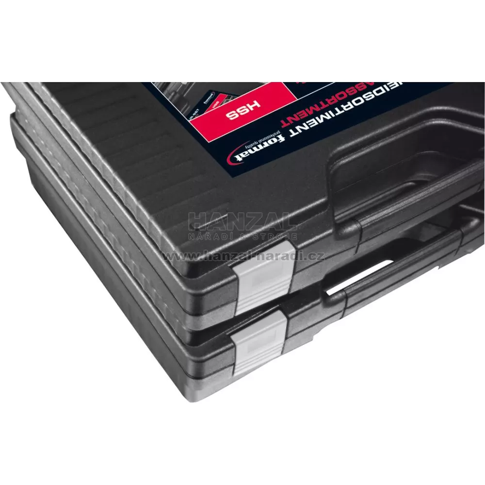 Provedení: Dodává se ve stabilním plastovém kufříku s držadly a 2 zámky. Nástroje, bez povrchové úpravy, jsou upevněny v různých držácích a okamžitě k dispozici.