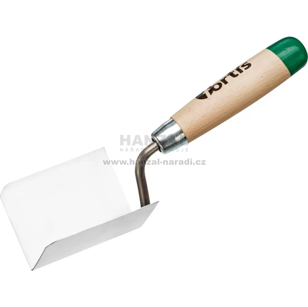 Lžíce na vnitřní rohy, nerez • List a závěs z nerezu, nerezová • Dřevěná rukojeť, lakovaná • Svěrka galvanizovaná • Na 90° rohy Celý popis