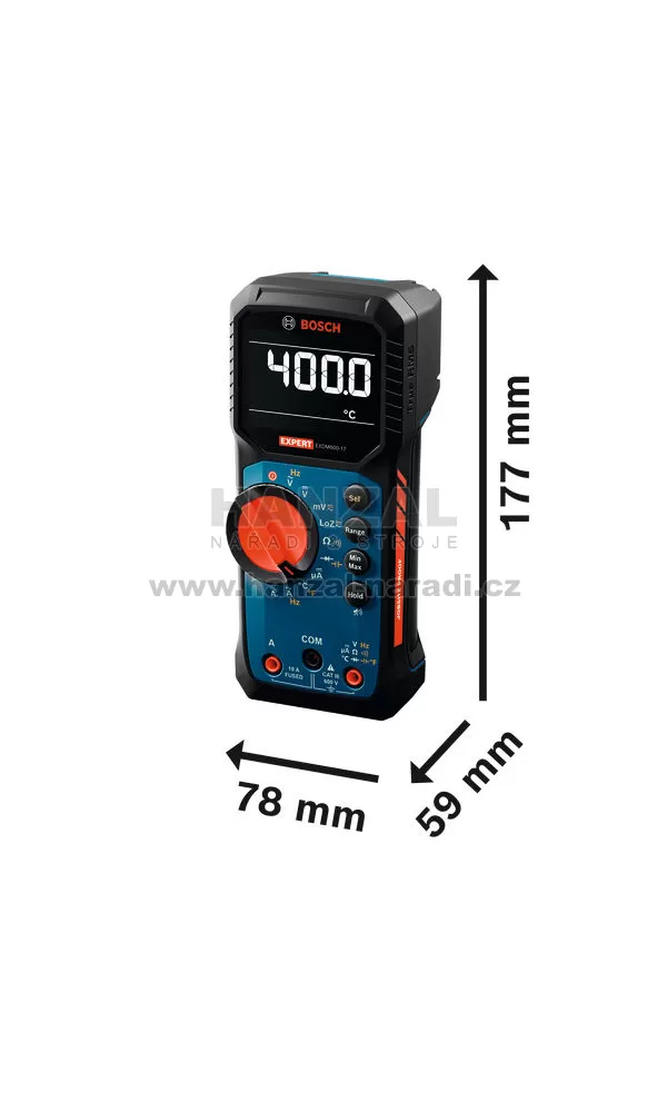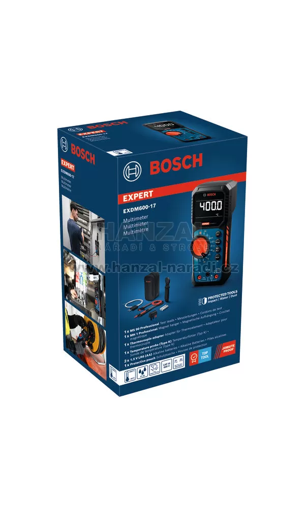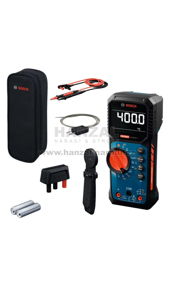 EXPERT EXDM600-17 je všestranný digitální multimetr s připojitelným rozhraním typu K, což umožňuje měření teploty od −40 do + 400 °C. Toto zařízení s rozšířenou funkčností HVAC také měří mikroampéry, odpor do 60 MΩ, LoZ a provádí testování diod. Jeho kompaktní konstrukce umožňuje snadné ovládání jednou rukou a je kompatibilní s magnetickým držákem MH 1 Professional.